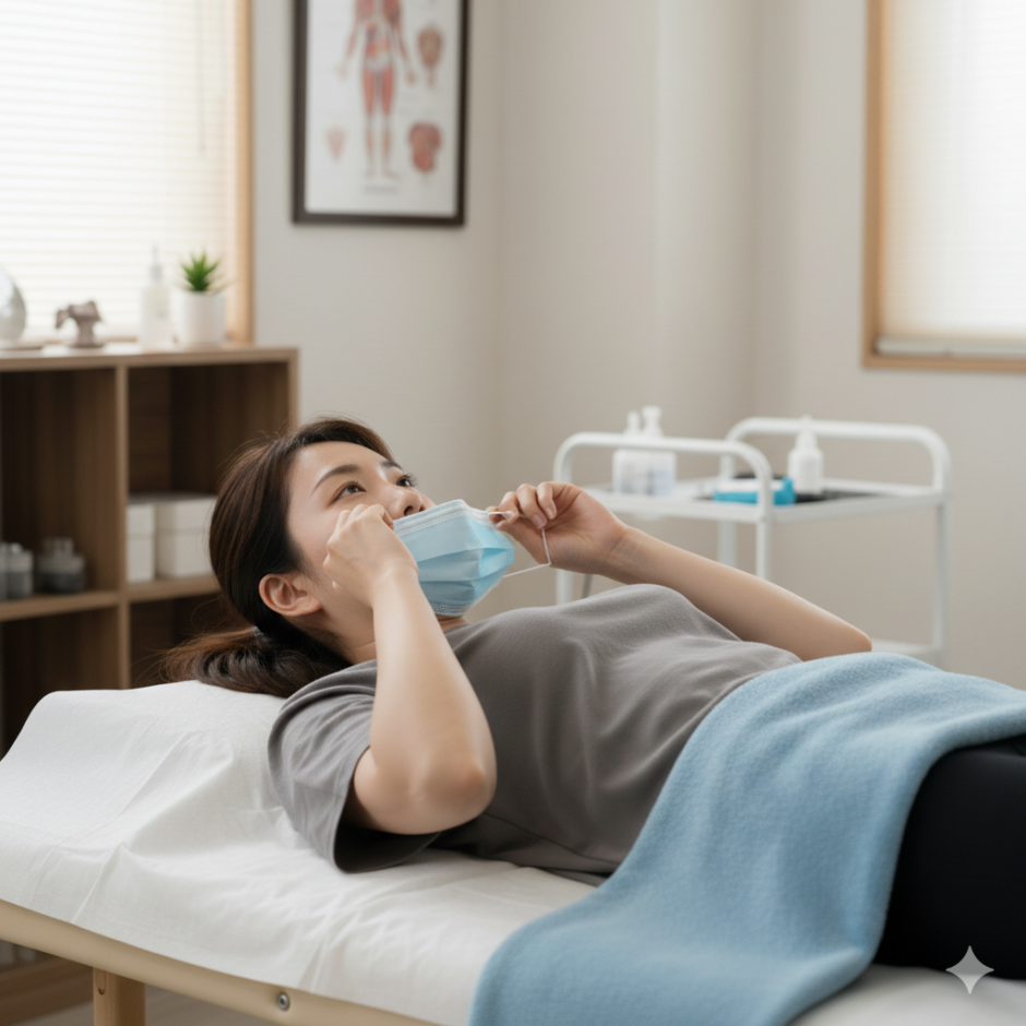 施術をマスクをしたままで受けようとする方が