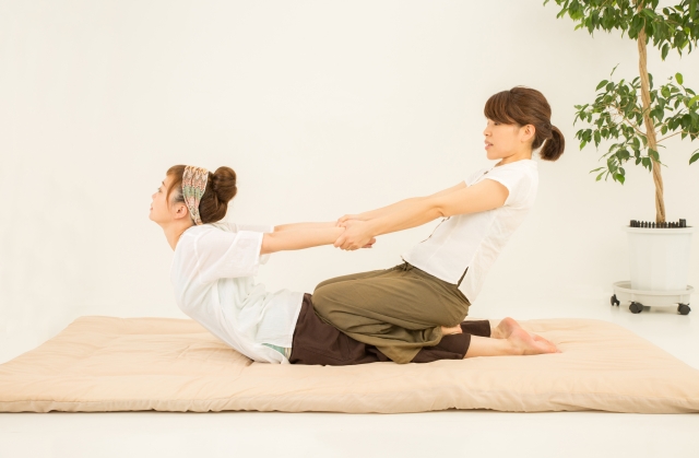 施術者が腕や肩を伸ばしたり